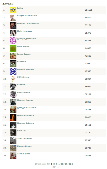 рейтинг Сумно? станом на 08.11.10 - поновлений