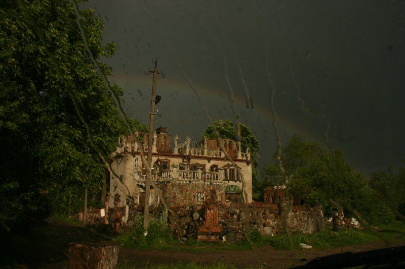 Цей "будиночок" виглядає як цілий казковий замок! А веселка розділяє небо на темну і ще більш темну частини. Гарно!